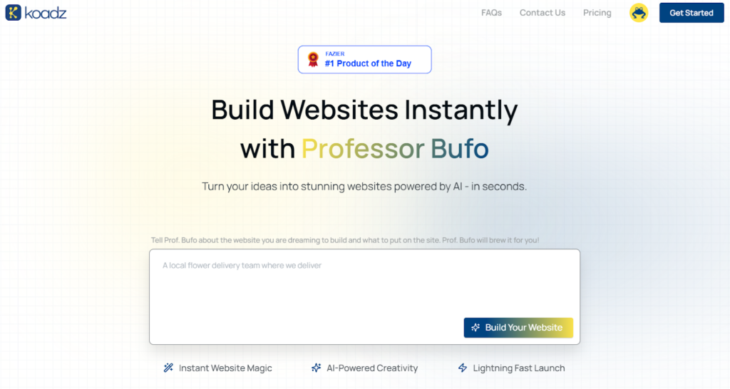 (Homepage of Koadz ai – A no coder website builder)
