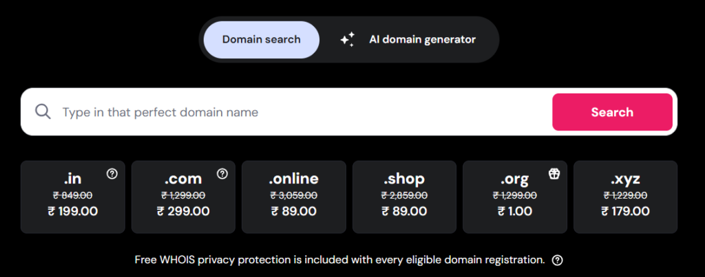 (Example of a domain search tool to check availability and pricing)