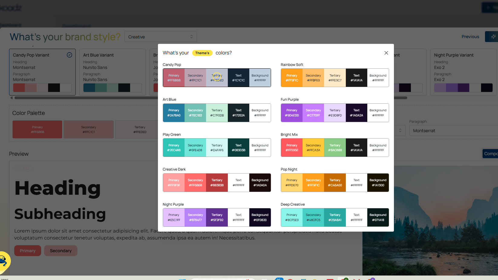 (Example of preset color palettes you can apply to your website)