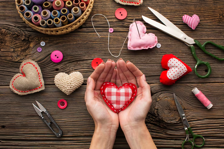 (Handmade craft products arranged on a table, representing a small home-based brand