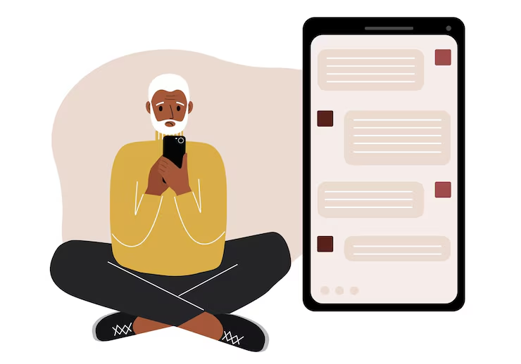 (Illustration of a person pausing while scrolling on a phone, symbolizing the moment when attention is captured)